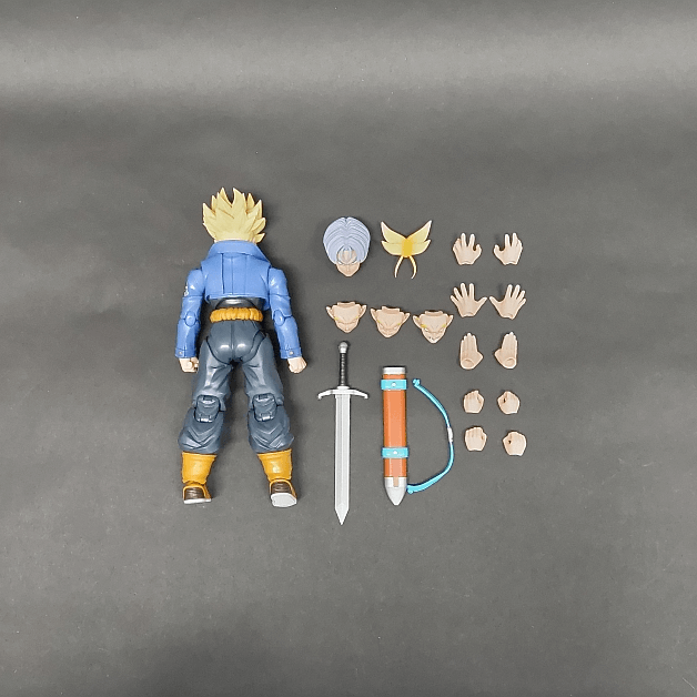 S.H.フィギュアーツ ドラゴンボールシリーズにおいて、初登場時の私服状態スーパーサイヤ人トランクスは2012年5月に最初のものが発売され、その後2016年1月に「-Premium Color Edition-」が魂ウェブ商店から発売されましたが、こちらの「未来から来た少年」版は2023年時点で最新となる関節構造を取り入れた完全新規造形での立体化となっています。ジャッケットに軟質素材を使用したことで剣を持ったアクション時の姿勢なども以前に発売されたものよりも自然に取らせることが可能です。さらに、交換用の頭部に変更することでスーパーサイヤ人に変身する前の通常状態にすることも出来ます。また、スーパーサイヤ人状態の交換用表情パーツは通常顔の他に叫び顔、食いしばり顔、右向き顔が付属。他の交換用パーツと組み合わせ、別売りのS.H.フィギュアーツ メカフリーザと一緒に飾ることで初登場時の一刀両断シーンを再現することも可能です。