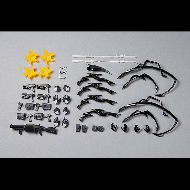 スパイダーマンと同様に手から発射するウェブのほか、全身から伸びる触手を5種類のパーツで組み換え可能にし、背中から伸ばした触手で銃を操る4挺拳銃といった戦いぶりまで自由にお楽しみいただけます。