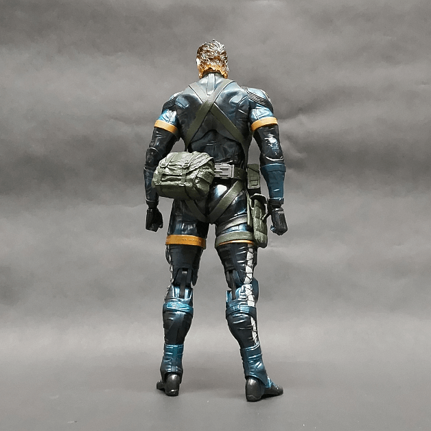 プレイアーツ改 METAL GEAR SOLID V GROUND ZEROES スネーク メタリックver.(限定仕様)は今年(2024年)から見ると10年前のアクションフィギュアになりますが、こちらのスネークから新構造を採用しており、以前のプレイアーツ改シリーズよりも滑らかでスムーズな肘・膝の可動ラインを実現しています。首や足首、肩には軟質樹脂を使用し、自然な動きと広い可動域を確保。スネークの鍛え抜かれたボディラインと筋肉の質感が見事に再現され、その独特の緊張感と屈強感を感じさせる立体化となっています。ナイフ、ライフル、ハンドガンなどの武器も細部まで精密に再現し、『METAL GEAR SOLID V GROUND ZEROES 』の劇中CGを忠実に再現した頭部はスコープ装備のものに交換することが可能。様々な劇中シーンを再現し、展示して楽しむことが出来ます。こちらの限定仕様のスネークはメタリック塗装になっており、外見の美しさはもちろんですが、通常版に比べると濡れたスーツの表面に光が反射しているような印象も受けます。『METAL GEAR SOLID V GROUND ZEROES 』はトレーラーの影響もあって雨天の夜間ミッションが記憶に残っている方も多いと思いますので、そういった方には限定仕様のメタリックver.はとてもお勧めです。
