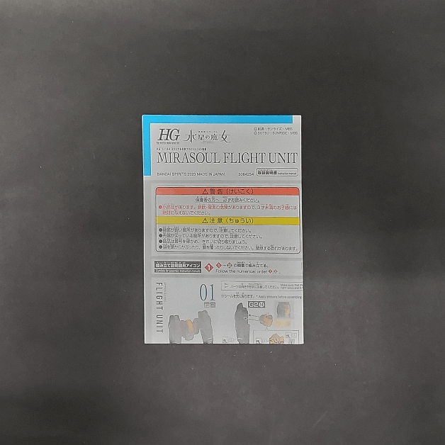 HG 1/144 ミラソウル社製フライトユニット装備は2023年1月14日に店頭一般流通で発売されました。中身は各ランナーとシール×1、組立説明書×1となり、組み立てることによってミラソウル社製フライトユニットとHG 1/144 ガンダムエアリアル用の平手パーツ左右各1種が完成します。