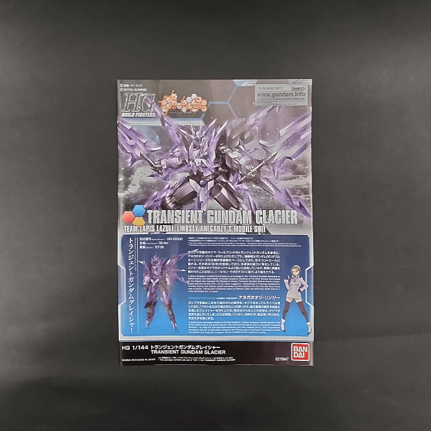 「HGBF」シリーズ、『ガンダムビルドファイターズ炎トライ」』に登場する1/144サイズの「トランジェントガンダムグレイシャー」のプラモデル。
