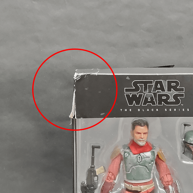 こちらのスター・ウォーズ ブラックシリーズ コブ・ヴァンス(マンダロリアン)はお客様から買取させていただいた未開封品となりますが、外箱に破れ(画像3枚目)が見られます。