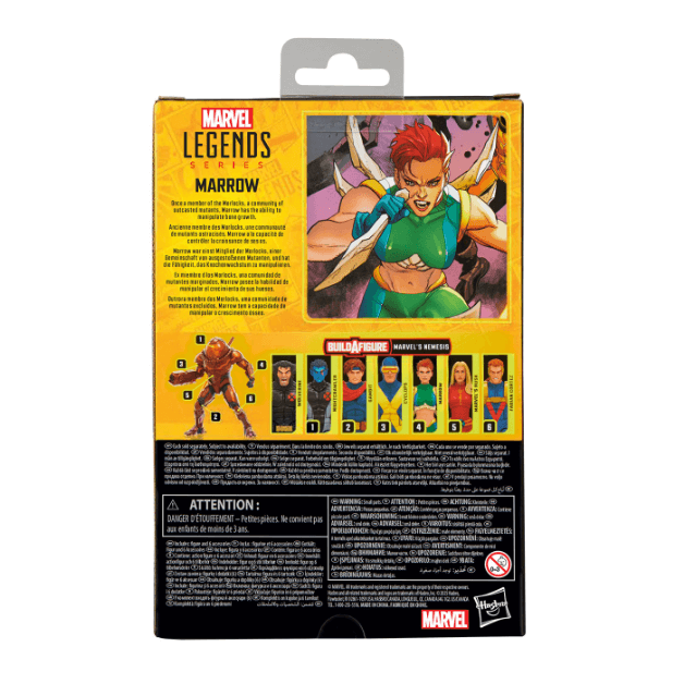 『X-Men』に登場するマロウを、全高約15cmのアクションフィギュアとして立体化。約25箇所の可動ポイントを擁しつつも、プロポーションを損なうことなく細部まで再現している。武器として、剣状になった骨が付属。アクセサリーとして、差し替え用ハンドパーツが付属する。また、同シリーズ最大の魅力といえば、ビルドアップ・フィギュアの存在。ナイトクローラー(Xフォース)、ガンビット(エイジ・オブ・アポカリプス)、サイクロップス(Xファクター)、マロウ、ハスク、ファビアン・コルテスの各フィギュアに付属されるパーツを揃えると、ネメシスが完成するぞ!パッケージは、そのまま飾ってもカッコいいウィンドウボックス仕様だ。