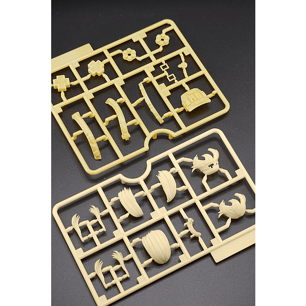 各ディティールに細かな分割を施すことにより、組み立てただけでイラストイメージに近い配色を再現し、素組みでも色鮮やかなモデルキットとなっています。