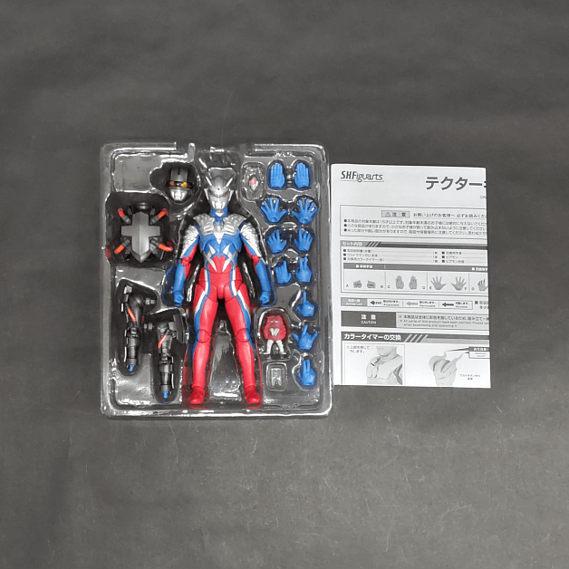 S.H.フィギュアーツ テクターギア・ゼロは2023年2月15日に魂ウェブ商店限定商品として発売されました。付属品は交換用左手首4種、交換用右手首7種、交換用カラータイマー(赤)、ウルトラマンゼロ再現用パーツ一式、ピグモンミニフィギュアとなります。