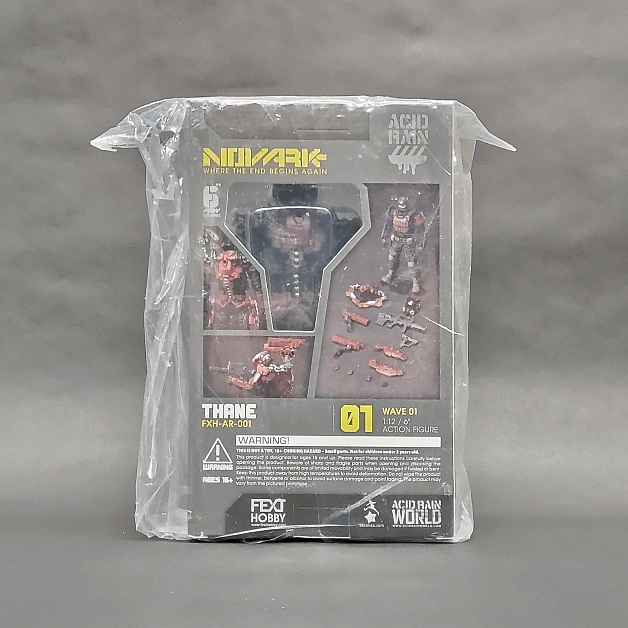 Acid Rain World Project Novark FXH-AR-001は、 Acid RainとFext Hobbyとのコラボレーションによる1/12スケールアクションフィギュアシリーズ第1弾の1体です。日本では公式には未発売の商品で、付属品は着脱可能なヘルメット、肩部エグゾスケルトンユニット、脚部エグゾスケルトンパーツ×2、ショルダーキャノン×2、ピストル、ライフル、接続パーツ×4となります。