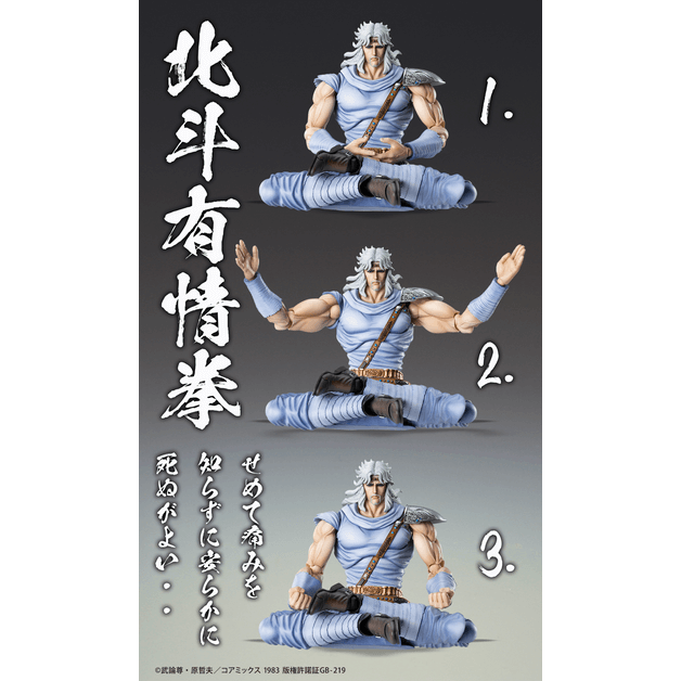 さらに、幅広い可動域と付け替え式オプションパーツにより「北斗有情拳」を用いた際の坐禅ポーズも再現可能!