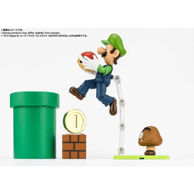 S.H.Figuartsのスーパーマリオシリーズが再び登場!『スーパーマリオ』の世界が更に広がるプレイセットが登場。ミドリこうら、コインといったお馴染みのアイテムに加え、ハテナブロック、レンガブロック、土管といったフィールドアイテムも付属。別売りのシリーズ商品と組み合わせることで様々なシーンを再現可能。敵キャラクターのクリボーも付属する。