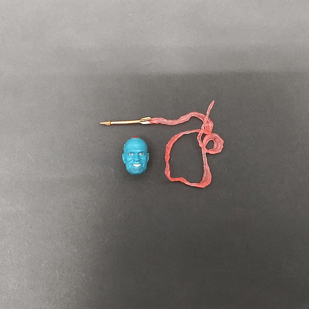 マーベルレジェンド ヨンドゥには、愛用のヤカの矢(エフェクト付き)と、2種類の頭部が付属。口笛を吹いている表情(リミックス後半のフィンver.)のものと笑顔(1~リミックス前半のフィンver.)の頭部パーツが付属します。