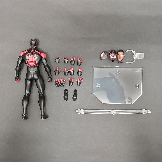 MAFEX(マフェックス) No.092 MAFEX SPIDER-MAN(Miles Morales)は2019年9月に発売されました。付属品は付属品は交換用マスク頭部1種、交換用素顔頭部1種、交換用手首左右各5種、マグネット付き交換用手首左右各1種、マグネット付き交換用足首左右各1種、マスク1種、ウェブパーツ×7、専用台座一式となります。