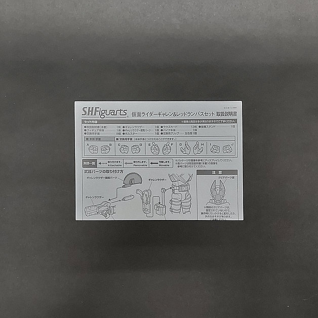 S.H.フィギュアーツ 仮面ライダーギャレン&レッドランバスセットは2014年1月25日に店頭一般流通で発売(2014年8月23日再販)されました。ギャレンの付属品は交換用手首左右各4種、ギャレンラウザー・ギャレンラウザー展開パーツ、ホルスター、ラウズカードとなり、レッドランバスの付属品はクリア台座、交換用グリップ(予備)となります。