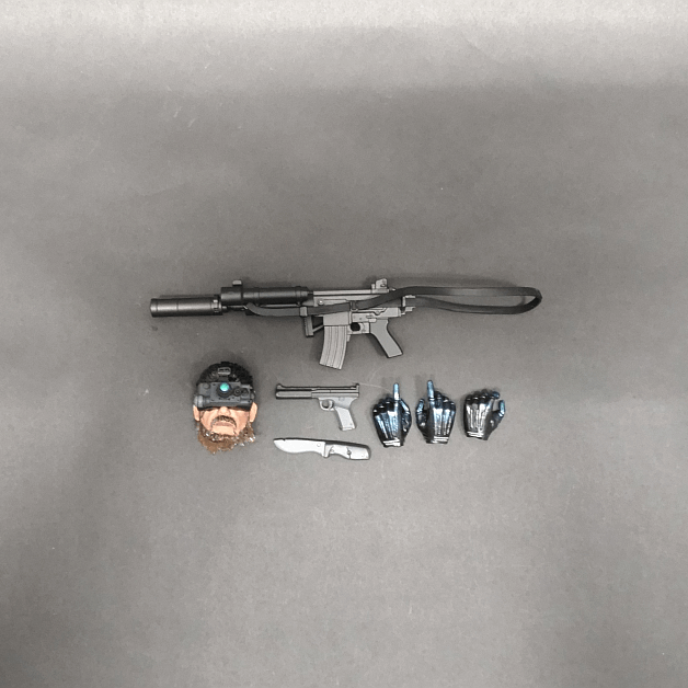 プレイアーツ改 METAL GEAR SOLID V GROUND ZEROES スネーク メタリックver.(限定仕様)は、2014年3月20日にゲームソフト『メタルギア ソリッド V グラウンド・ゼロズ』のフィギュアをセットにしたコナミスタイル限定版として発売されました。付属品は交換用スコープ装備頭部、交換用手首×3、ハンドガン、ナイフ、ライフル、専用台座一式となります。