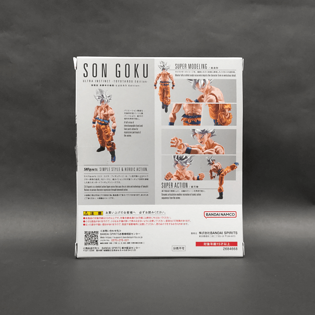 S.H.フィギュアーツ 孫悟空 身勝手の極意は2020年4月(2024年9月再販予定)に店頭一般流通で発売されていますが、こちらは漫画『ドラゴンボール超』を手掛けるとよたろう先生が完全監修した、孫悟空 身勝手の極意-とよたろうEdition-としてS.H.フィギュアーツで新たに立体化したものです。頭部と表情パーツはとよたろう先生監修による新規造形となっています。表情パーツは通常顔の他に叫び顔、食いしばり顔、左目線顔、とよたろう先生お気に入りの目閉じ顔が付属しており、交換用の手首パーツを付け替えることで劇中の様々なシーンを再現して飾ることが出来ます。