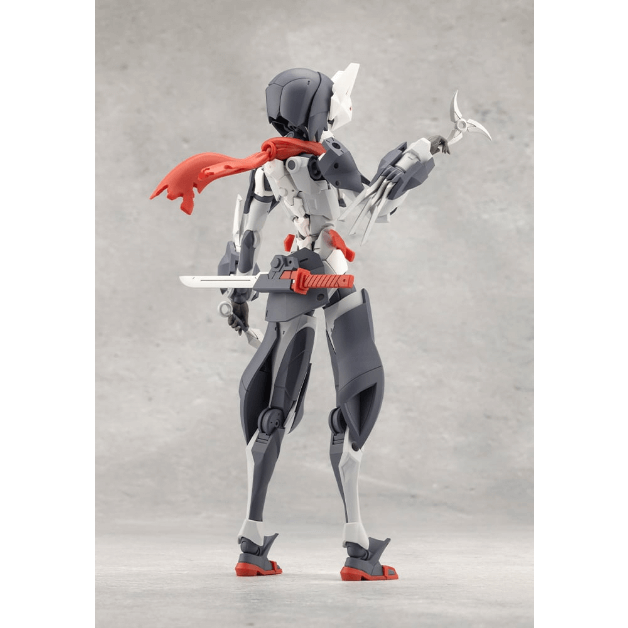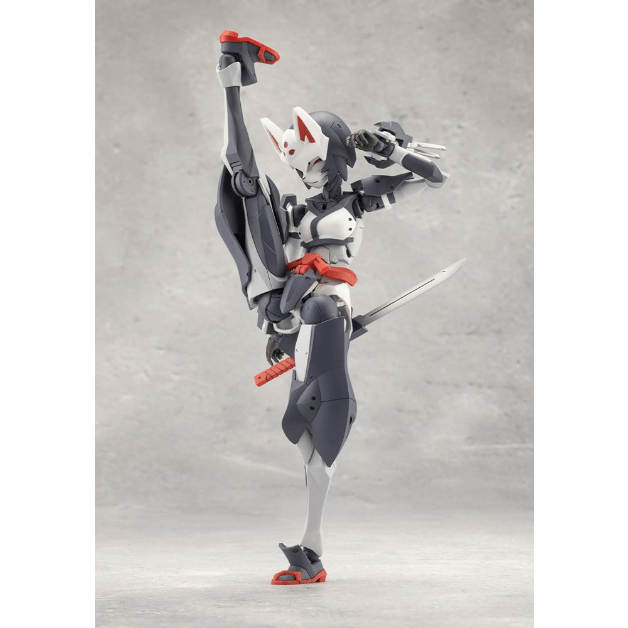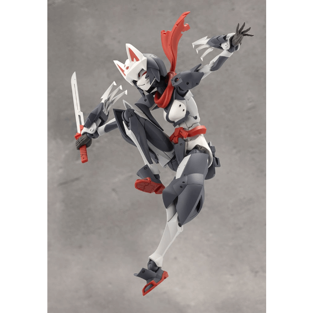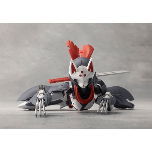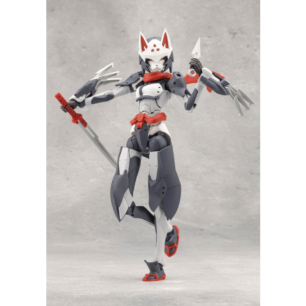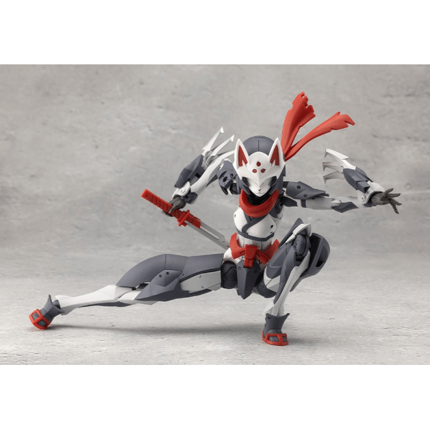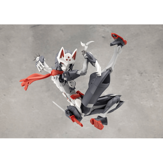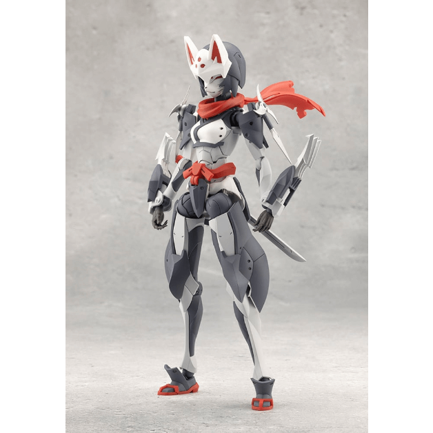 マスクは特徴的な「狐面」となっているほか、ケモミミ付きヘッドギア、外連味の溢れるマフラーは基部のボールジョイントで表情付けが可能。マフラーは取り外した状態にすることもできます。