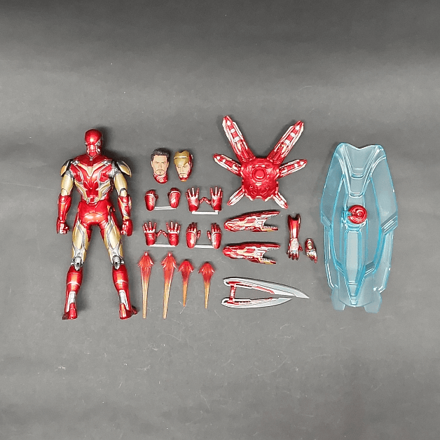 マフェックス No.140 MAFEX IRON MAN MARK85(Endgame Ver.)は2022年6月に発売されました。付属品は、交換用手首左右各4種、交換用頭部2種、ナノガントレット差し替えパーツ、ナノ・ライトニング・リフォーカサー、エナジーブレード、クローブラスター×2、ホロシールド、エフェクトパーツ一式、専用台座一式となります。(こちらのルーズ品は専用台座一式欠品)