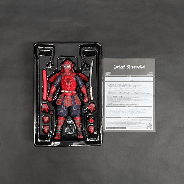 名将MANGA REALIZATION 侍スパイダーマンは2016年8月27日に店頭一般流通商品として発売されました。付属品は交換用手首左右各3種、日本刀一式、鎖パーツ一式(鎖、腕輪パーツ左右)となります。