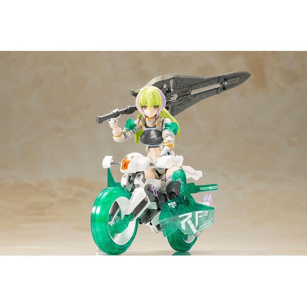 鮮やかなカラーリングのクリアーパーツ化を行い、バイクらしいマーキングを追加、さらに追加武装を付属した商品になります。