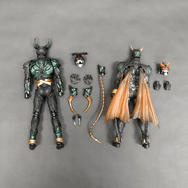 バンダイ「S.I.C.(Super Imaginative Chogokin)」シリーズ、平成仮面ライダーシリーズ第2作目『仮面ライダーアギト』に登場する「仮面ライダーギルス」と「仮面ライダーアナザーアギト」のアクションフィギュア。