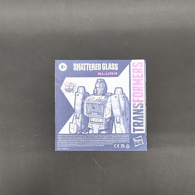 こちらのシャッタードグラス ブラーは、IDWコミックで『Transformers: Shattered Glass』が始まったことに合わせ、新たに玩具シリーズ展開された『Transformers Generations Shattered Glass Collection(トランスフォーマー ジェネレーションズ シャッタードグラス コレクション)』の商品。元になったのは「Transformers Studio Series 86-03 Blurr/トランスフォーマー スタジオシリーズ SS-63 オートボットブラー」で頭部やカラーリングが変更されています。元のブラーと同様にスーパーカー(フューチャーカー)に変形し、付属品は銃とトーチです。