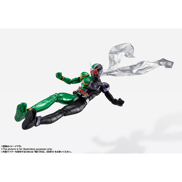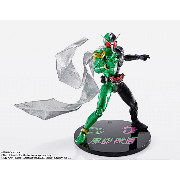 「S.H.Figuarts(真骨彫製法)仮面ライダーW サイクロンジョーカー」が『風都探偵』アニメ化を記念して新規布製マフラーパーツ付属で登場。布製マフラーは針金が入っており自由なアクションを演出できる。更に、アニメ化記念の台座パーツも付属!※布製マフラーを保持するためには魂STAGE(別売り)をお使いください。