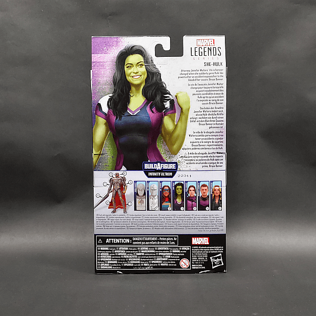 マーベルレジェンド シー・ハルク(MCU)は、ウルトロン(ホワット・イフ...?)シリーズの1つとしてDisney+(ディズニープラス)で配信中のマーベル・スタジオオリジナルドラマに登場するその他多くのキャラクターと共に発売されました。付属品は交換用手首左右各1種、ウルトロン(ホワット・イフ...?)のビルドパーツ左脚となります。(こちらの商品はビルドパーツ欠品)