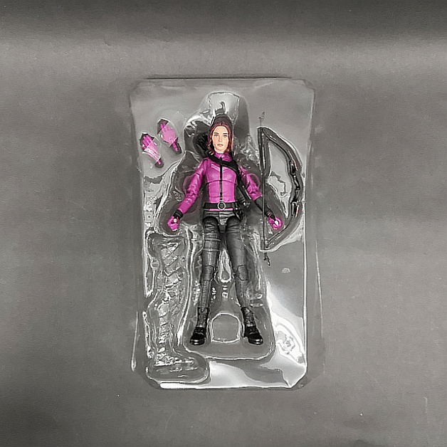 ハズブロ社の人気アクションフィギュア「マーベルレジェンド」シリーズの6インチライン。Disney+(ディズニープラス)で配信中のマーベル・スタジオオリジナルドラマシリーズ『ホークアイ』に登場する「ケイト・ビショップ」のアクションフィギュア。