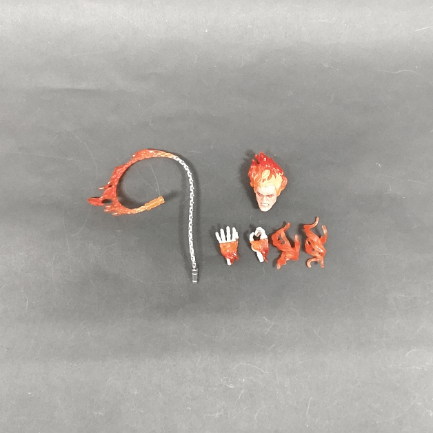 マーベルレジェンド レトロコレクション ゴーストライダーは人気の商品で、過去に発売された際はすぐに新品・中古フィギュア市場から消えてしまいましたが、再販されたことで値段が落ち着きました。付属品は交換用頭部1種、交換用手首左右1種、チェーン、エフェクトパーツ×2となります。
